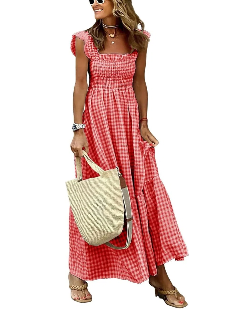 Women's Retro Plaid Smocked Flounce Long Dress (Buy 2 Free Shipping)